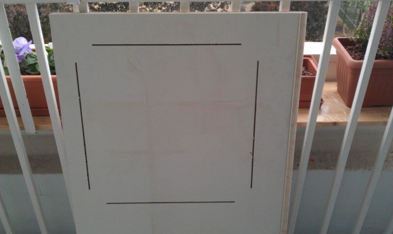 Néhány ellenőrző mérés (többször mérj, egyszer vágj!) után előáll a kivágandó vonal.