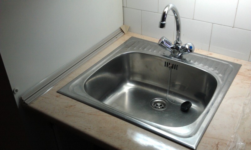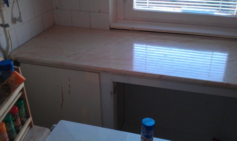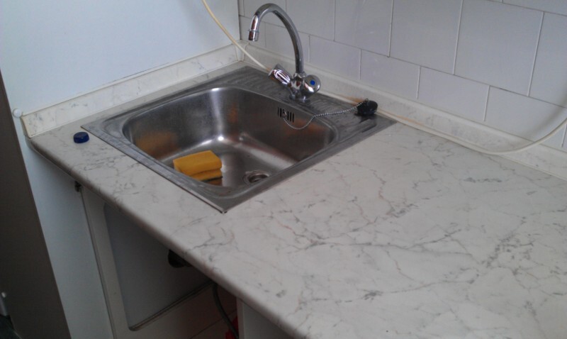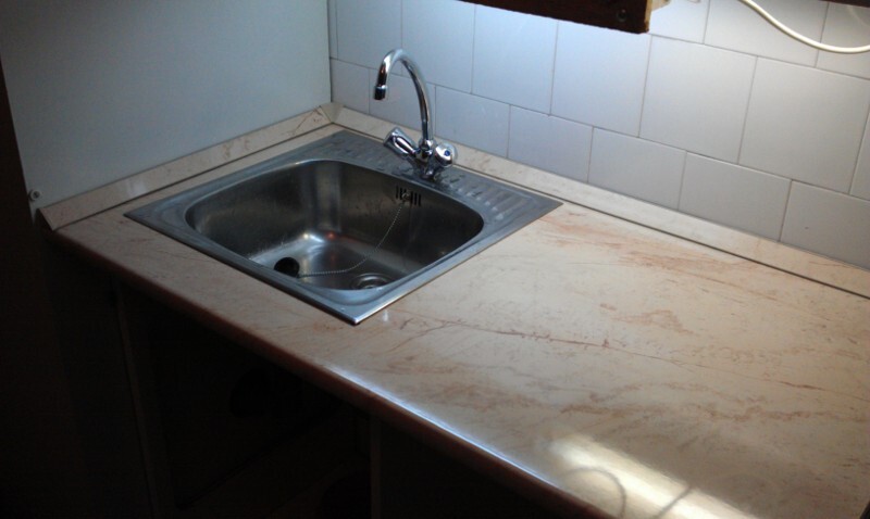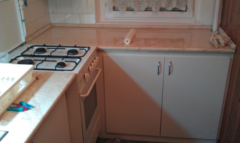 A méretre szabásra várni kellett, mert valami érthetetlen oknál fogva sokan azzal töltik a szombat délutánt, hogy konyhapultot cserélnek. A lényeg az, hogy röpke két óra alatt sikerült egy remekbe szabott konyhapultot szerezni, s persze egy színben hozzá illő vízzárót.