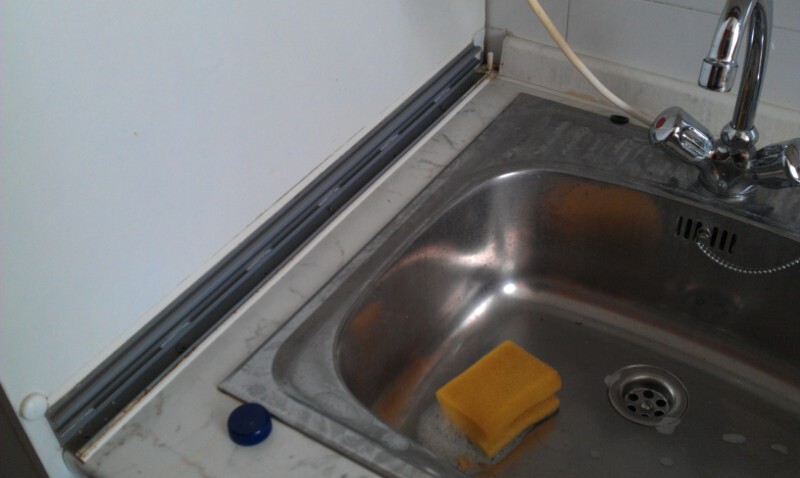 Sejthető, hogy a vízzáró és a pult mögött némi kosz található, ezzel meg kell küzdeni.
