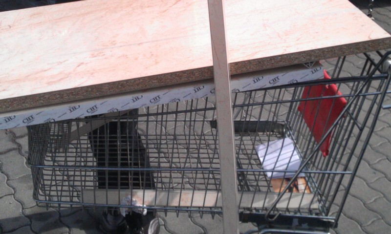 Egy közeli Baumax áruházban sikerült megtalálni az új pultot, amelyet méretre is szabtak – a kis tervrajzomnak nagyon örült a Baumax áruházban dolgozó szaki, el nem tudom képzelni, hogy mások milyen rajzokkal támadnak…