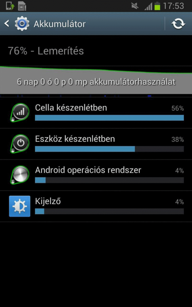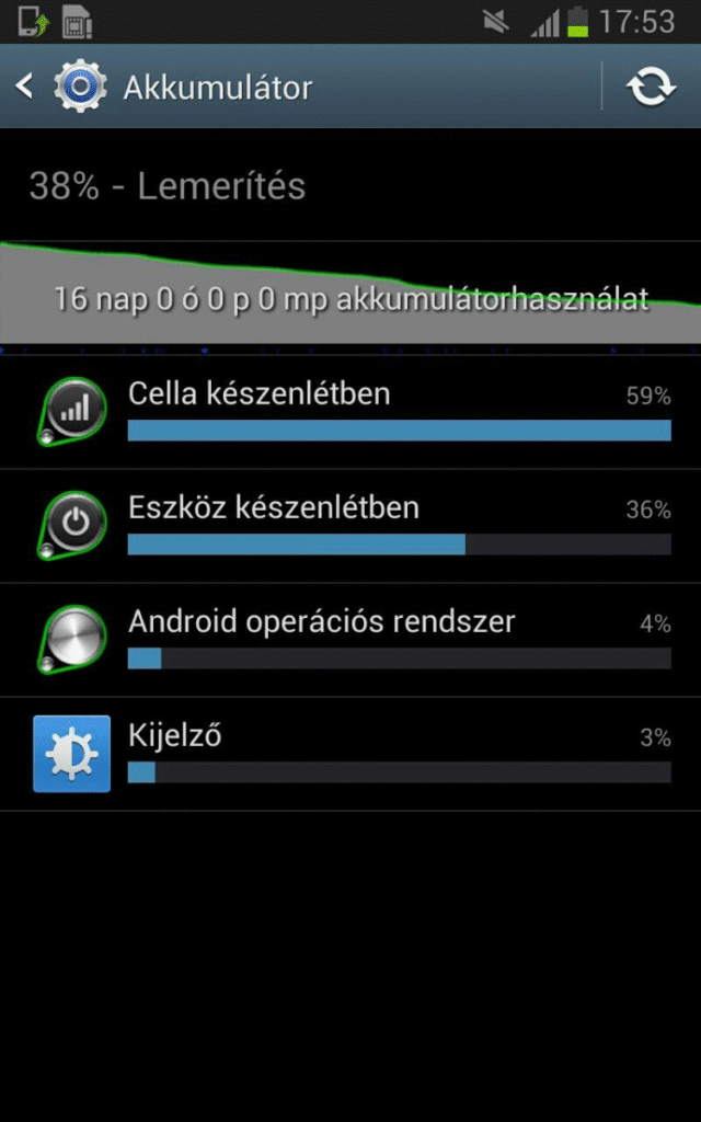 Nemrég lecseréltem a telefonomat Note-ról (N7000) egy Note2-re (N7100), ennek apropóján éppen azt nézem, hogy mennyi ideig bírja egy töltéssel normál telefonként használva – vagyis készenlétben a táskámban – a régi Note.