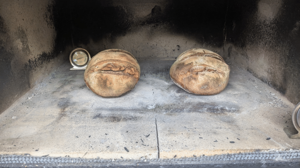 A maradék tésztát egyszer még át kell gyúrni, meg kell formázni a kenyeret és lisztes deszkán hagyni még 3-4 órát kelni letakarva, majd kemencében 250 fokon 35-40 perc alatt kisütni. 🙂
